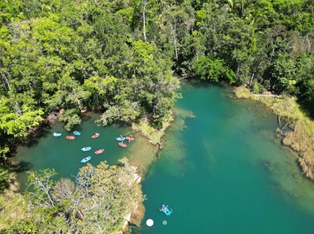 El Lago Cinco Azules es parte de un parque más grande con ese nombre Five Blues Lake National Park, un paraíso natural que combina río, lago y pequeños pantanos no peligrosos. Se ubica en el distrito Stann Creek.